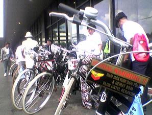 JAKARTA,MINGGU — Berbagai cara dilakukan untuk mendukung tokohnya maju sebagai calon presiden. Salah satunya dengan konvoi mengayuh sepeda ontel. Hal tersebut dilakukan oleh sekitar 50 orang yang tergabung dalam Sayap Ontel Merti Nusantara, yang mendukung Sultan HBX untuk maju sebagai capres di Pemilu 2009.